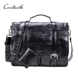 CONTACT'S vegetables leather men briefcase for 13 inch laptop with leather bifold casual business male messenger bag big handbag