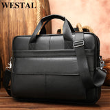 WESTAL Men's Briefcase Leather Laptop Bag Business Lawyer Office Bags for Men Bag Genuine Leather Briefcases for Document 1115